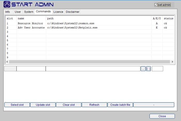 With the [Create batch file] button you can generate a *.bat file that will automatically start the desired program without having to launch StartAdmin.