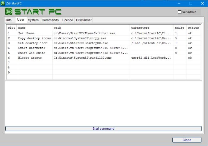 The program can be started with the “/all” option to automatically execute all commands in sequence; Typically, you can run it from Windows’ [Task Scheduler] at user logon: Startpc.exe /all