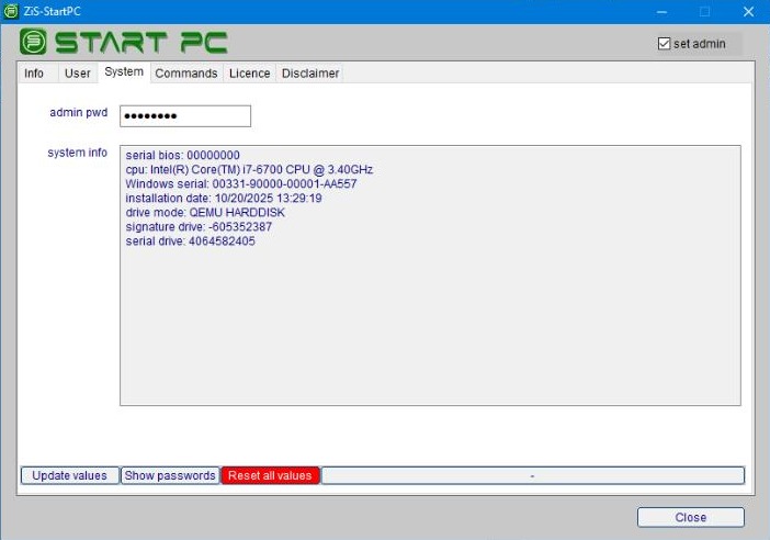 download StartPCTo receive your license code, complete the payment and send an email to info@zis.it with your details and the serial code generated by the program.